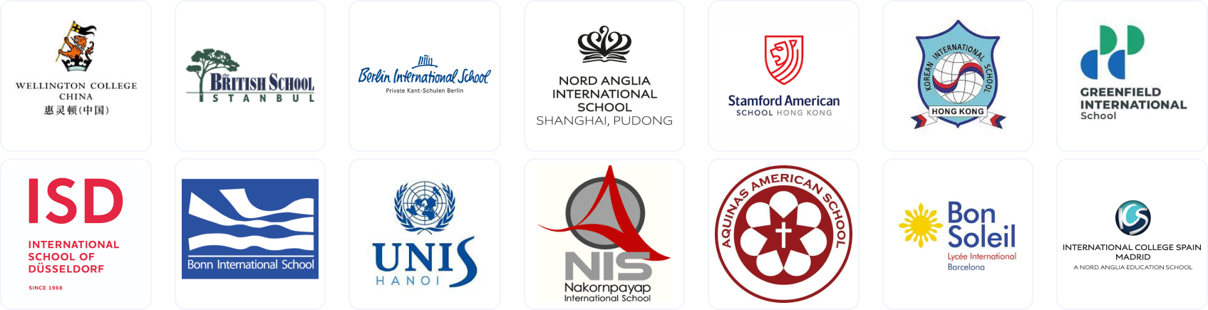 To date, we’ve hosted events for schools based in China, Mongolia, Turkey, Greece, Japan, Philippines, Thailand, Vietnam, Cambodia, Laos, Azerbaijan, Armenia, Georgia, Germany, Egypt, the UAE, South Africa, the US and many more! Some International Schools we’ve worked with to date: